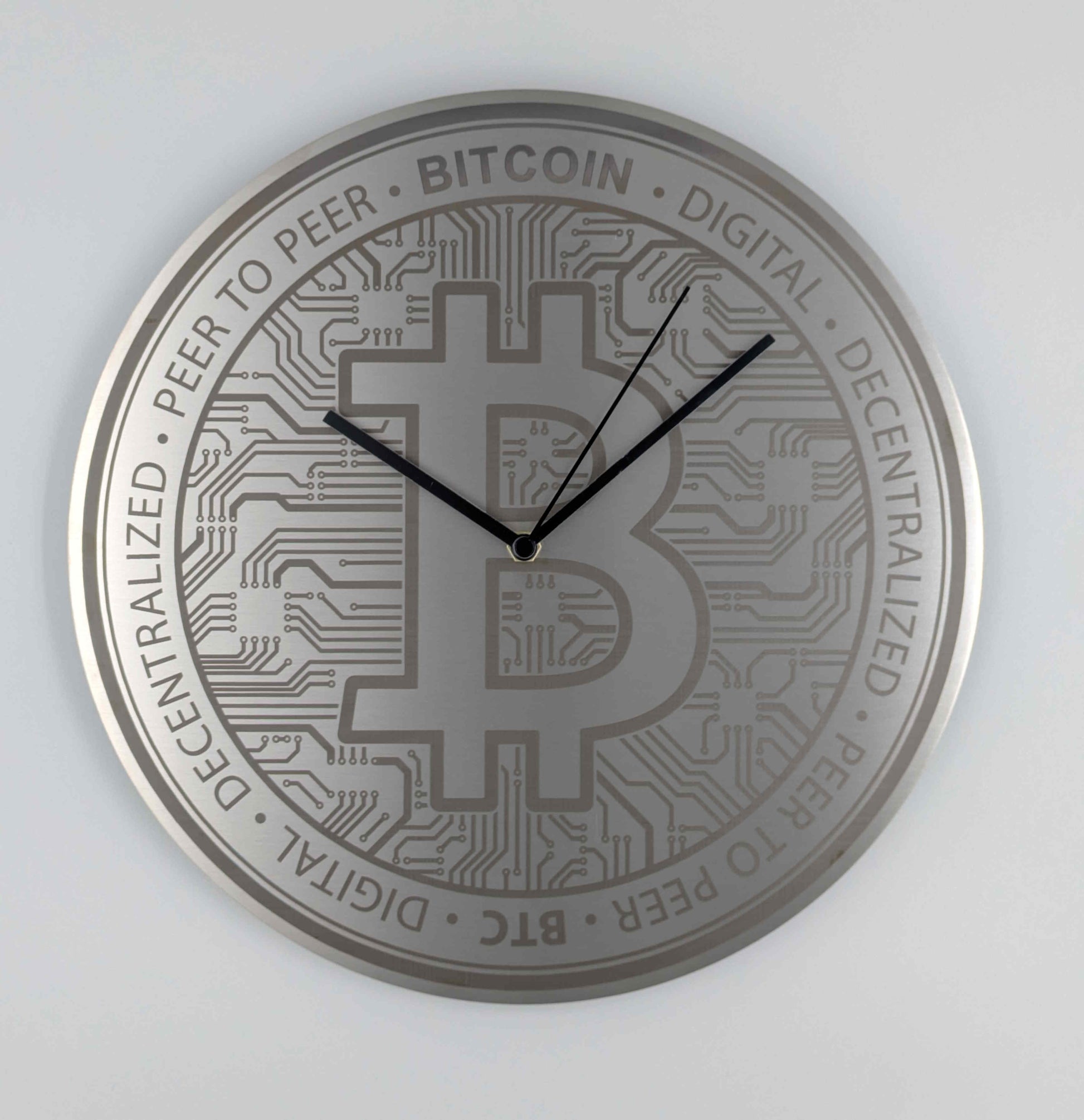 Wanduhr aus Edelstahl - Bitcoin Motiv